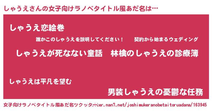 | 男性向けラノベタイトル風あだ名 | 『魔弾の王としゃうえ』 |