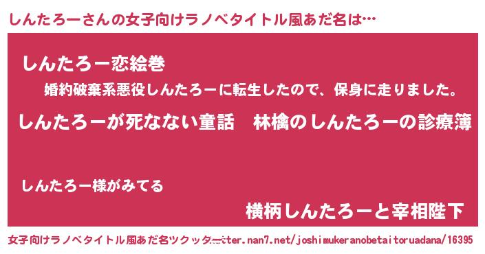 | 男性向けラノベタイトル風あだ名 | 『魔弾の王としんたろー』 |