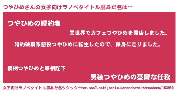 | 男性向けラノベタイトル風あだ名 | 『ツヤヒメスレイヤー』 |