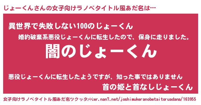| 意味不明あだ名 | 『自称じょーくん』『永久保存じょーくん』 |