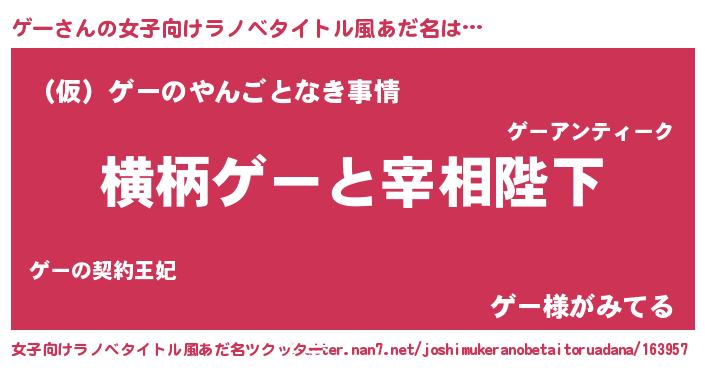| 男性向けラノベタイトル風あだ名 | 『ゲーに滅ぼされるだけの簡単なお仕事です』 |