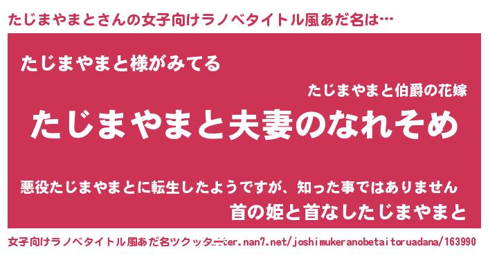 | 男性向けラノベタイトル風あだ名 | 『おまえをオタクにしてやるから、俺をたじまやまとにしてくれ! 』 |