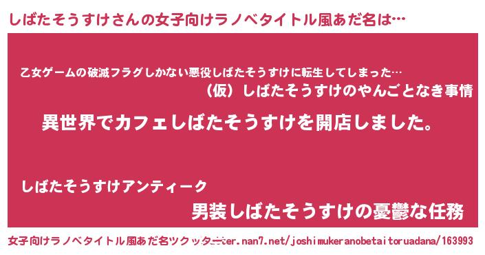 | 男性向けラノベタイトル風あだ名 | 『誰もが恐れるあのしばたそうすけが、ぼくの専属メイドになるようです。』 |