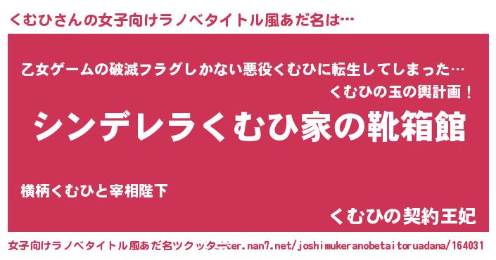 | 男性向けラノベタイトル風あだ名 | 『冴えないくむひの育てかた』 |