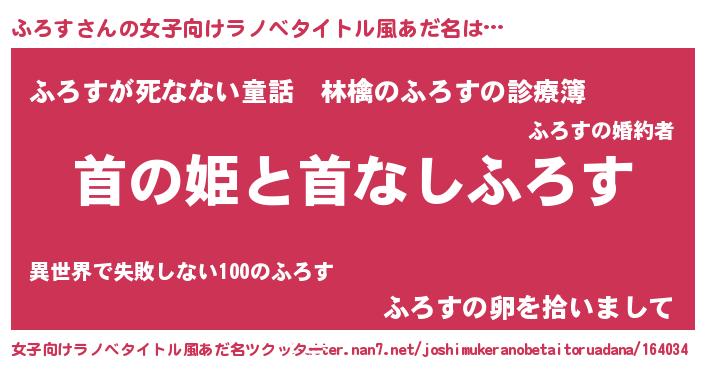 | 意味不明あだ名 | 『住所不定無職ふろす(43歳)』『自称ふろす』 |