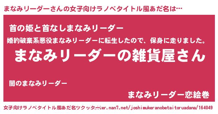 | 男性向けラノベタイトル風あだ名 | 『やはりまなみリーダーの青春ラブコメはまちがっている 』 |