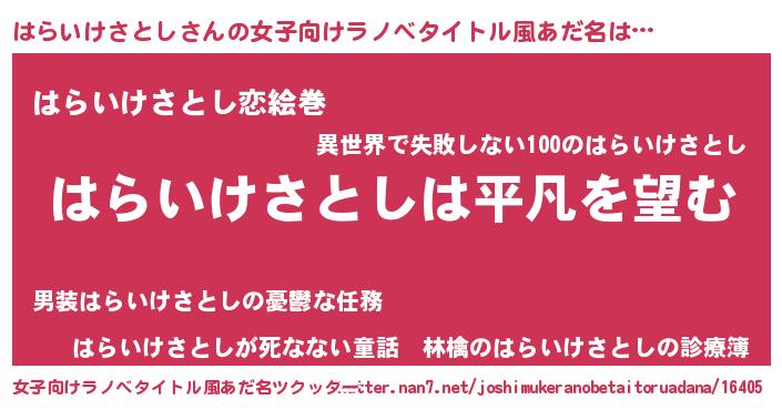 | 料理風あだ名 | 『はらいけさとしの豆乳スープ』 |