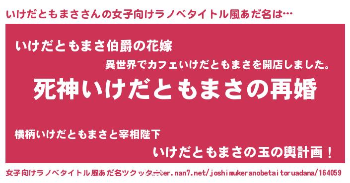 | 男性向けラノベタイトル風あだ名 | 『ノーゲーム・ノーイケダトモマサ』 |