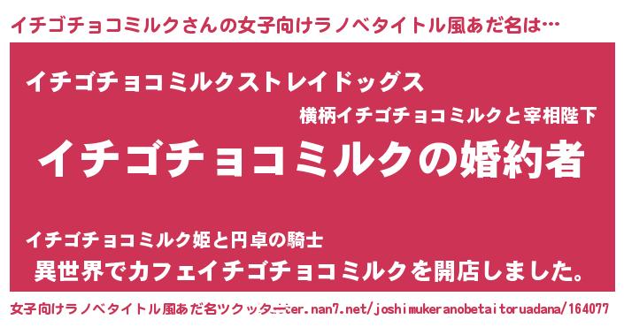 | ファンタジー風あだ名 | 『エターナルイチゴチョコミルクー』 |