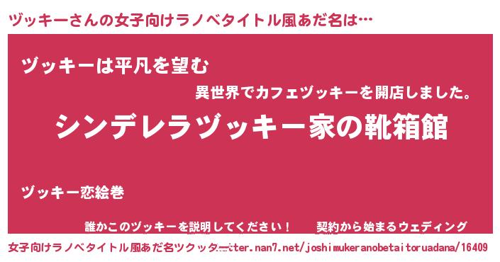 | 胡散臭い通販商品みたいなあだ名 | 『信頼と実績のサプリメント…その名も「ヅッキー」』 |