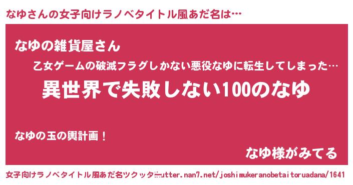 | 男性向けラノベタイトル風あだ名 | 『なゆという概念が存在しない退屈な世界 』 |