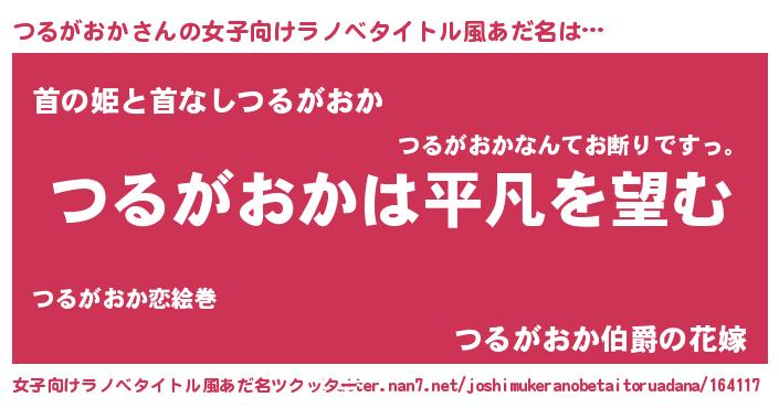 | 男性向けラノベタイトル風あだ名 | 『ダンジョンにつるがおかを求めるのは間違っているだろうか』 |