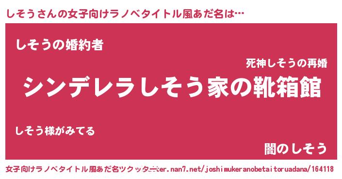 | 意味不明あだ名 | 『しそうフォーエバー』『自称しそう』 |