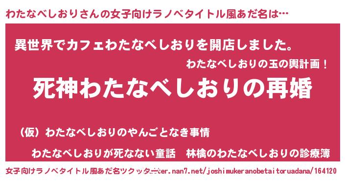 | 男性向けラノベタイトル風あだ名 | 『ノーゲーム・ノーワタナベシオリ』 |