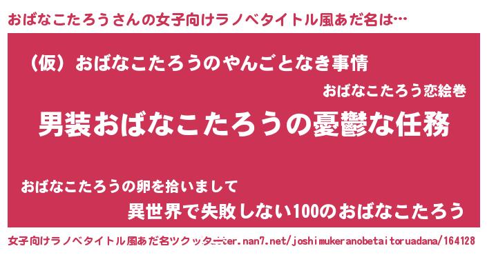| 男性向けラノベタイトル風あだ名 | 『冴えないおばなこたろうの育てかた』 |