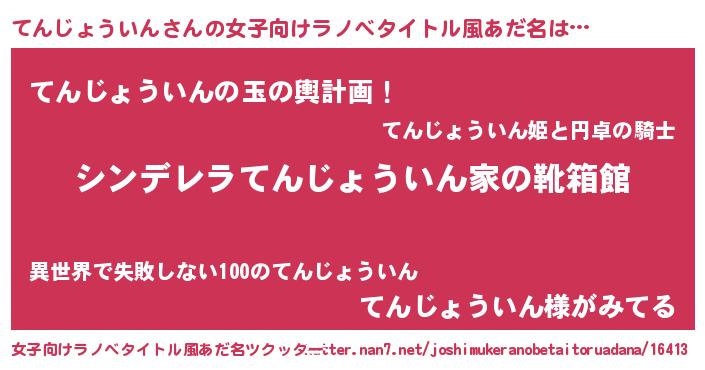 | 胡散臭い通販商品みたいなあだ名 | 『信頼と実績のサプリメント…その名も「てんじょういん」』 |