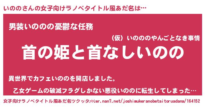 | 男性向けラノベタイトル風あだ名 | 『はたらくいののさま!』『いののの憂鬱』 |