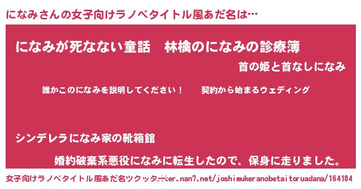 | ファンタジー風あだ名 | 『ニナフェル』『ヴァルニナーナ』 |