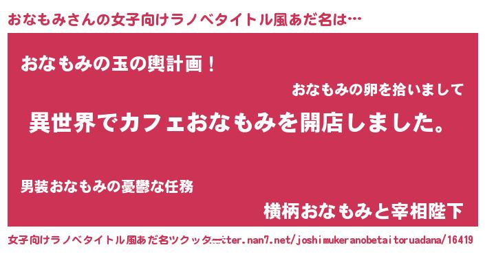 | ヒーロー風カッコイイあだ名 | 『ネオオナモミ』『幻影騎士オナ』 |