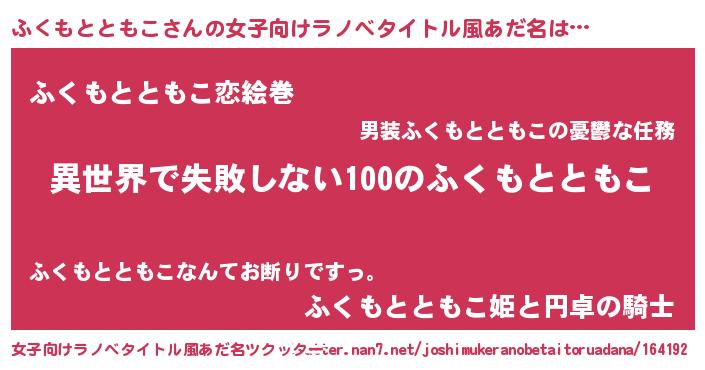 | ヘコむあだ名 | 『ふくもとともこ(笑)』『ふくもー』 |