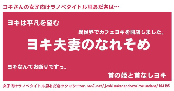 | ヘコむあだ名 | 『ヨキぷりん』『ヨキ(笑)』 |