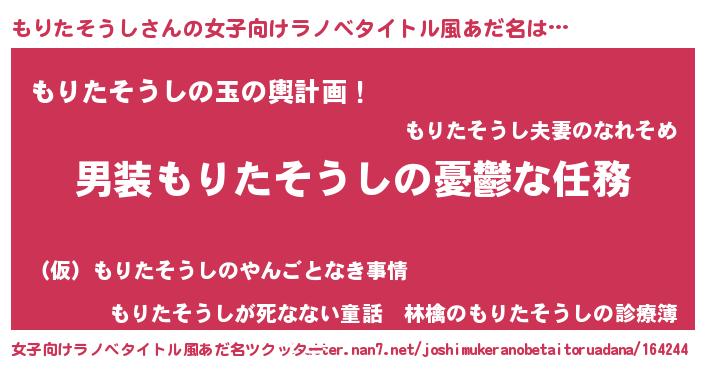 | 男性向けラノベタイトル風あだ名 | 『うちのもりたそうしが世界を掌握している!』 |