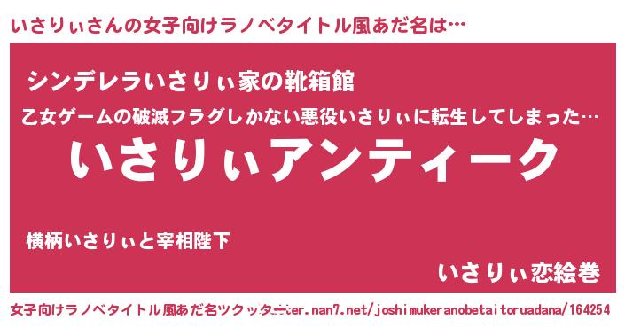 | 恥ずかしいあだ名 | 『イサリィデラックス』『いさちん』 |