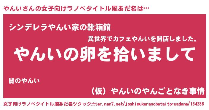 | ヘコむあだ名 | 『やん太郎』『やんっふぃ~』 |