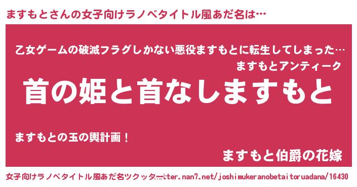 | 男性向けラノベタイトル風あだ名 | 『はたらくますもとさま!』 |