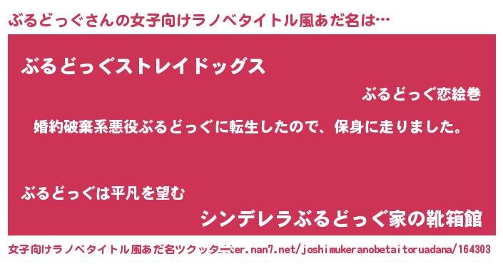 | 男性向けラノベタイトル風あだ名 | 『転生したらぶるどっぐだった件』 |