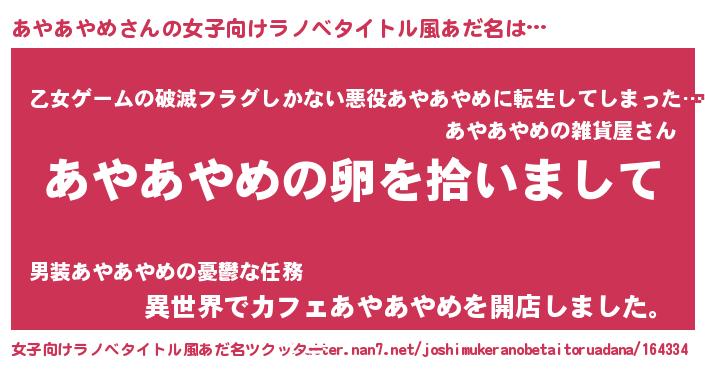 | 意味不明あだ名 | 『とにかく怪しいあやあやめ』 |