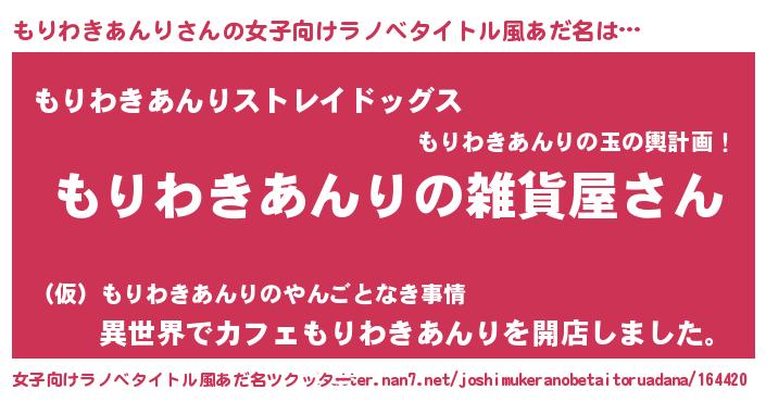 | 肩書あだ名 | 『もりわきあんり大統領』 |