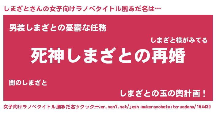 | 男性向けラノベタイトル風あだ名 | 『ノーゲーム・ノーシマザト』 |