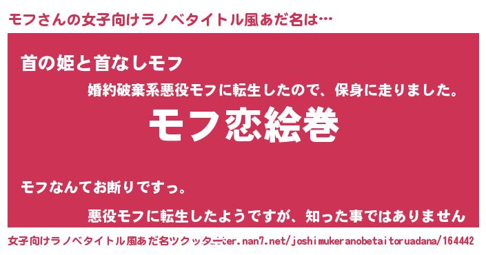 | 男性向けラノベタイトル風あだ名 | 『ノーゲーム・ノーモフ』 |
