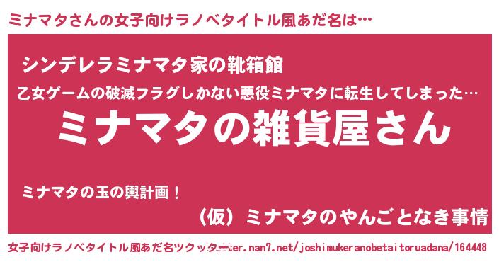 | 男性向けラノベタイトル風あだ名 | 『やはりミナマタの青春ラブコメはまちがっている 』 |