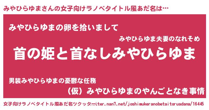 | 男性向けラノベタイトル風あだ名 | 『はたらくみやひらゆまさま!』 |