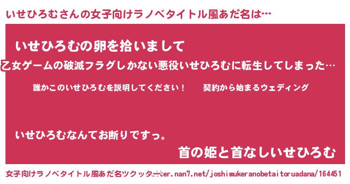 | 胡散臭い通販商品みたいなあだ名 | 『億万長者になれるブレスレット…その名も「いせひろむ」』 |