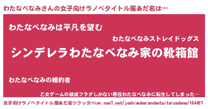 | 男性向けラノベタイトル風あだ名 | 『緋弾のワタナベナミ』 |