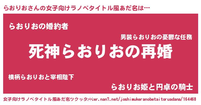 | 男性向けラノベタイトル風あだ名 | 『ノーゲーム・ノーラオリオ』 |