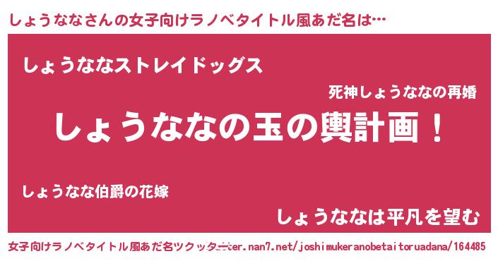 | 男性向けラノベタイトル風あだ名 | 『転生したらしょうななだった件』 |
