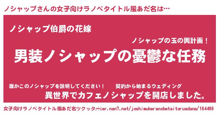 | 胡散臭い通販商品みたいなあだ名 | 『世界が平和になる高級そうな絵画…その名も「ノシャップ」』 |