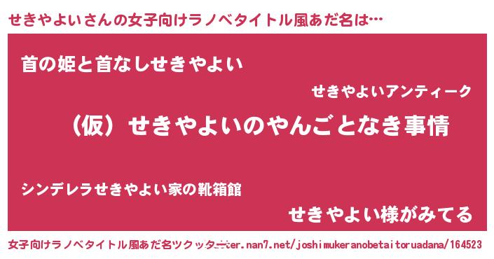 | 意味不明あだ名 | 『ペロリンせきやよい』『自称せきやよい』 |