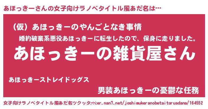 | 男性向けラノベタイトル風あだ名 | 『やはりあほっきーの青春ラブコメはまちがっている 』 |