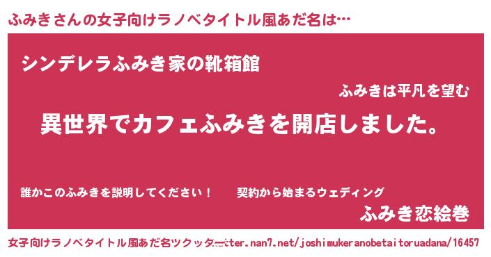 | 男性向けラノベタイトル風あだ名 | 『誰もが恐れるあのふみきが、ぼくの専属メイドになるようです。』 |