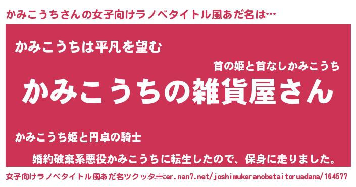| 男性向けラノベタイトル風あだ名 | 『やはりかみこうちの青春ラブコメはまちがっている 』 |