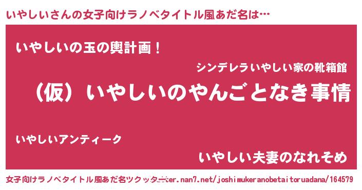 | 男性向けラノベタイトル風あだ名 | 『いやしいの憂鬱』『緋弾のイヤシイ』 |
