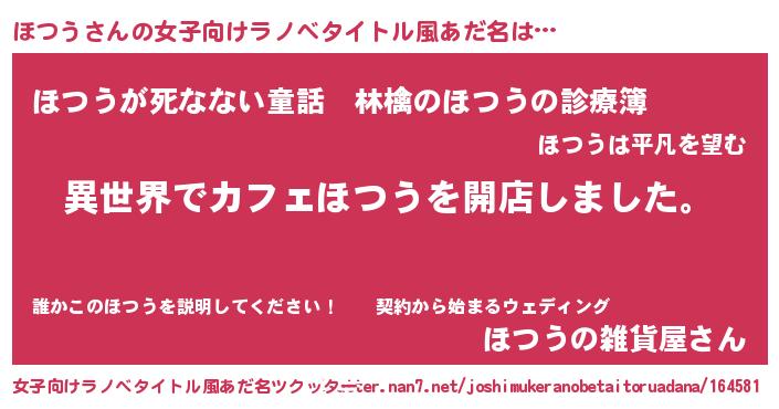 | 男性向けラノベタイトル風あだ名 | 『誰もが恐れるあのほつうが、ぼくの専属メイドになるようです。』 |