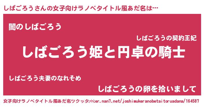 | 男性向けラノベタイトル風あだ名 | 『シバゴロウアートオンライン』 |