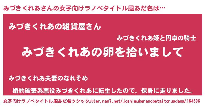 | 胡散臭い通販商品みたいなあだ名 | 『伝統あるサプリメント…その名も「みづきくれあ」』 |