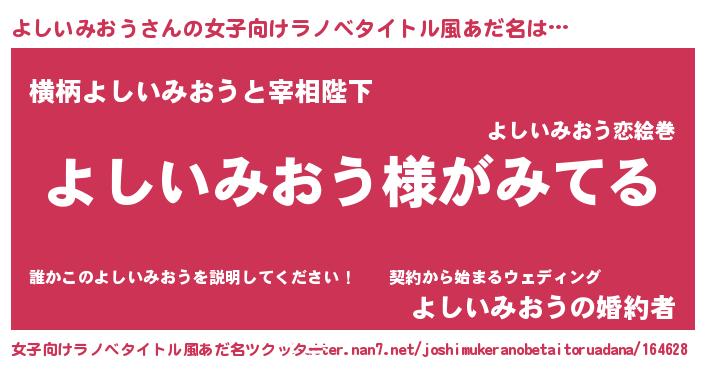 | 男性向けラノベタイトル風あだ名 | 『よしいみおうの嫁は女の子じゃないと思った?』 |